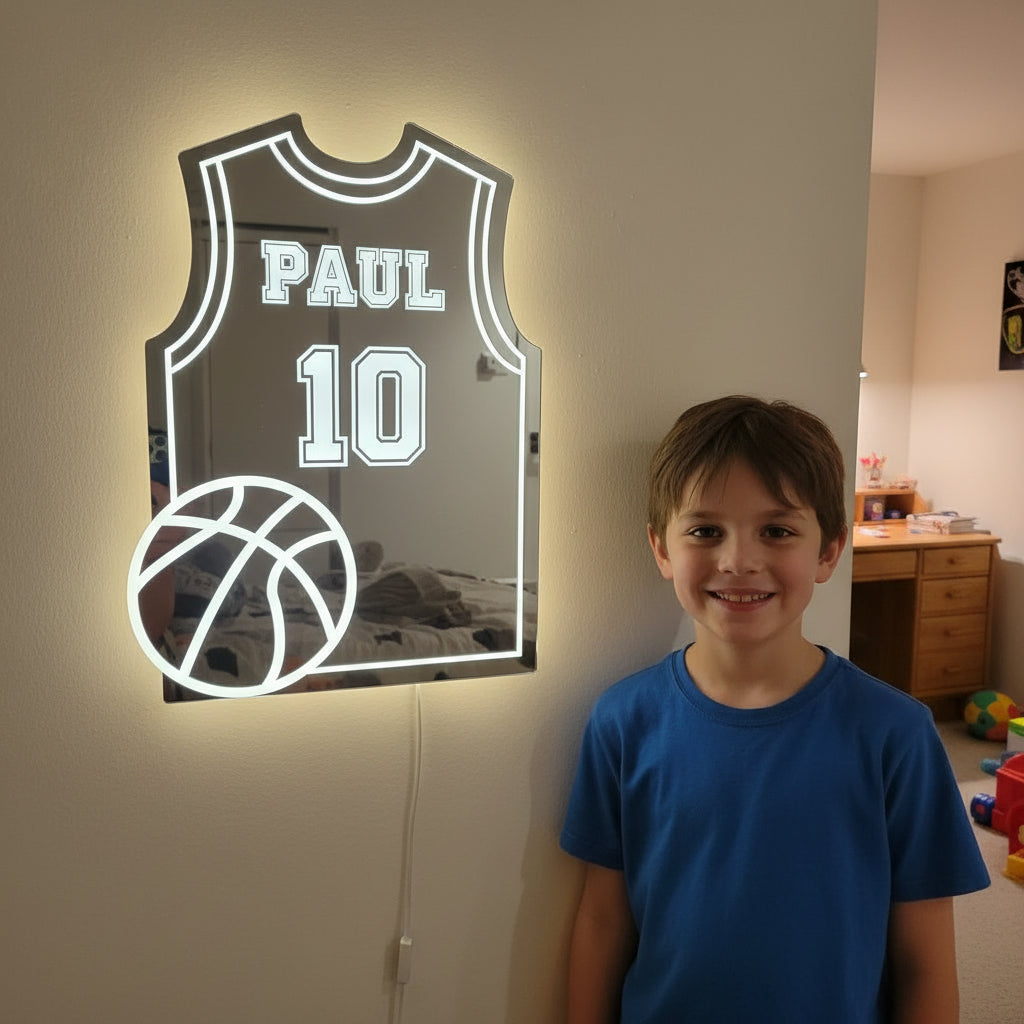 Each mirror lamp is made to order and personalised with any name and number you choose.